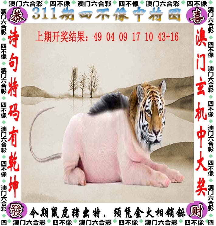 | 311期 | 兔猪牛羊 | 虎马龙猴 | 开:?00 |